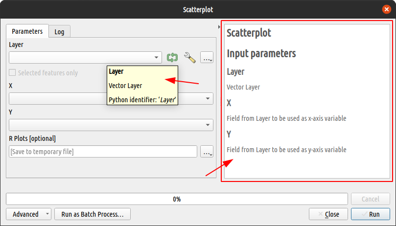 3"X": "A <b>Field</b> from <em>Layer</em> to be used as <code style='background-color: yellow;'>x-axis</code> variable",